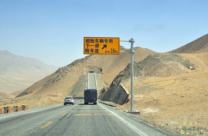 此道路是我见过的最密集的自救车道区,几乎是几公里一个。
