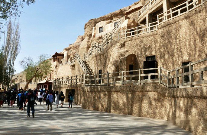取票后先是到数字展示中心观赏电影《千年莫高》和球幕电影《梦幻佛宫》,两部电影分别介绍了莫高窟的历史,堪称佳作。球幕电影《梦幻佛宫》是重点,观看位置很重要,建议观看第一场电影时坐在出口处,便于结束后快人一步到达球幕影厅选择最佳位置,倒数第一、二排的中间位为最佳。影片播放完毕后,随着工作人员的指引就可以登上观览车前往景区,之后由导游带领参观实体洞窟。淡季可参观十二个窟,旺季只能是八个。