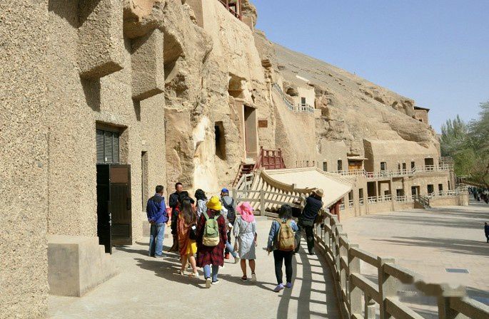 网上预约了9点参观莫高窟,必须提前半小时到达莫高窟数字展示中心取票。国之瑰宝的莫高窟是世界现存规模最大、内容最丰富的佛教艺术圣地。为了保护莫高窟,景区通过实名认证限额售票的方式控制人流,旺季一票难求,提前预约非常重要。