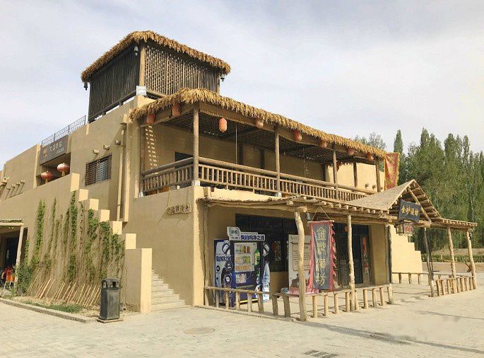 中午回到敦煌的月牙泉小镇已经是一点多。小镇以沙洲千年古城为模板,营造出了一个集吃喝玩乐住等为一体,既有沙漠古镇风光,也有戈壁荒漠美景的返璞归真商业街。选择住在鸣沙山下的月牙泉小镇,是因为这个仿古度假村给人恍如置身武侠片中“龙门客栈”一样的神秘。