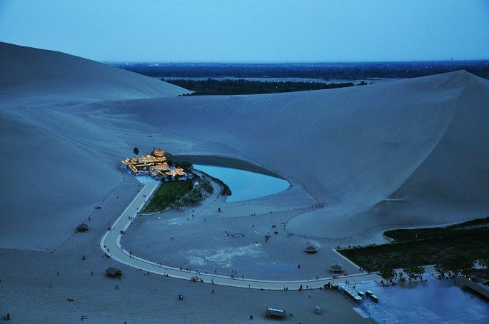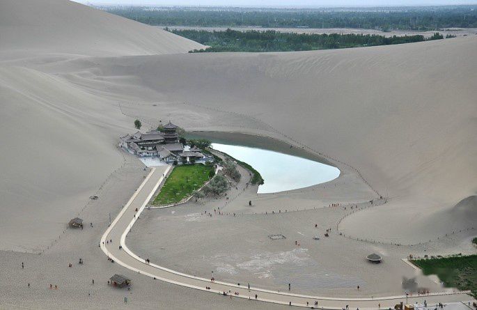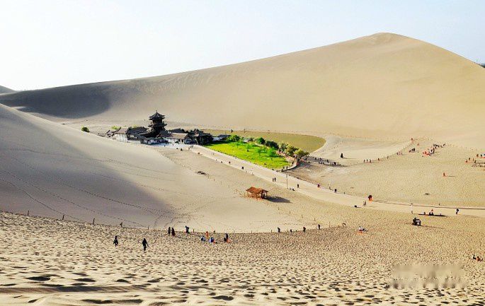 自古历来水火不能相容,沙漠清泉难以共存,但在鸣沙山却能看“山泉共处,沙水共生”的奇妙景观,无愧“塞外风光之一绝”。