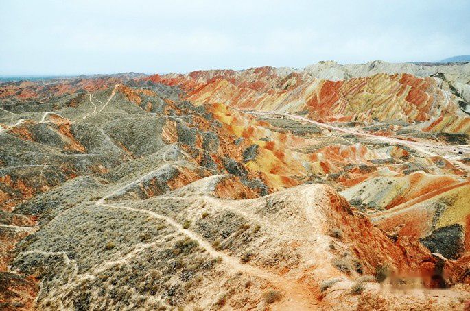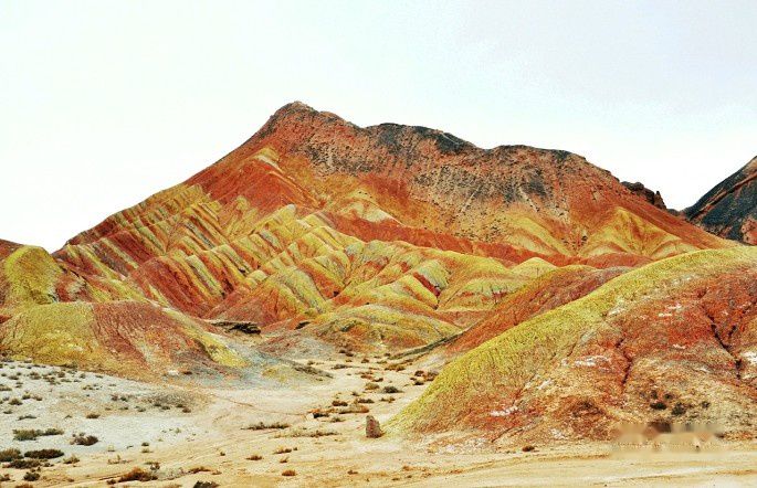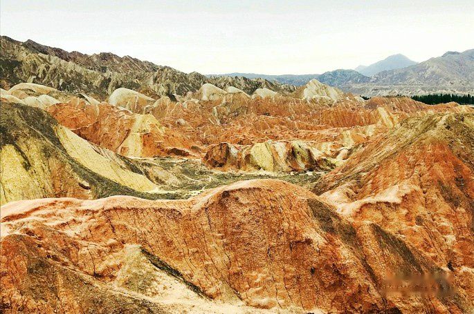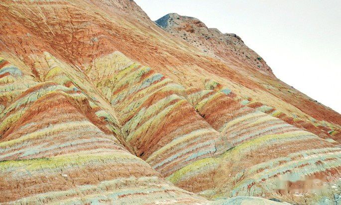 每天最佳拍摄时间是下午,这时的丹霞最有层次感。看着层理交错的线条、灿烂夺目的画面,仿佛进入了一个彩色童话世界。