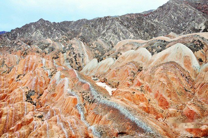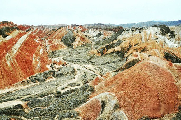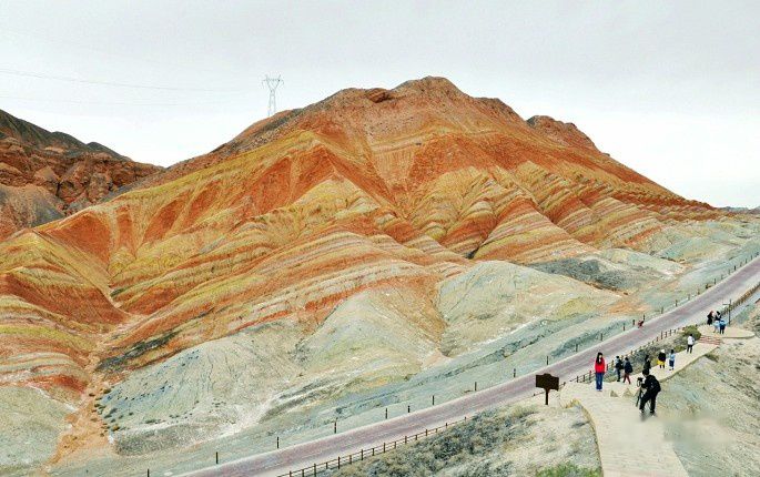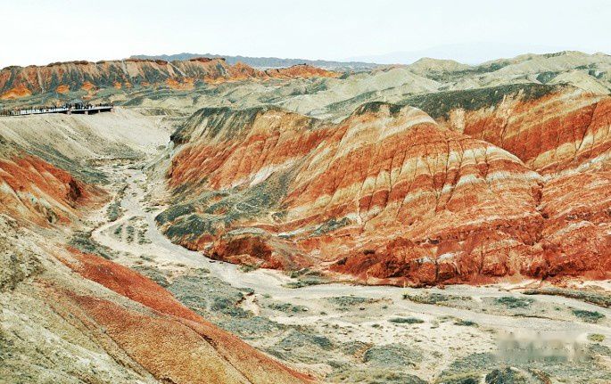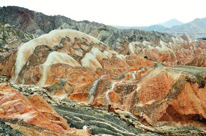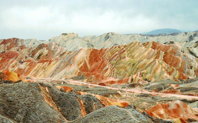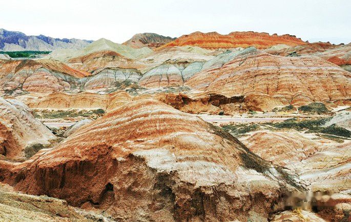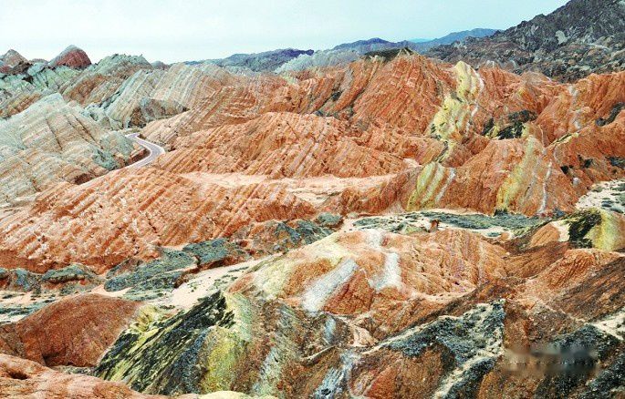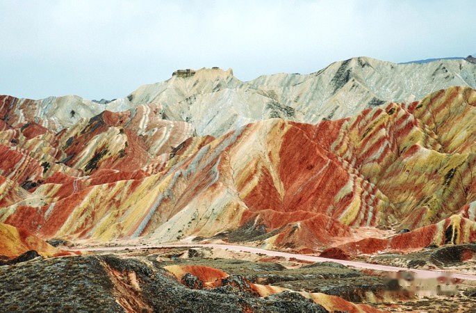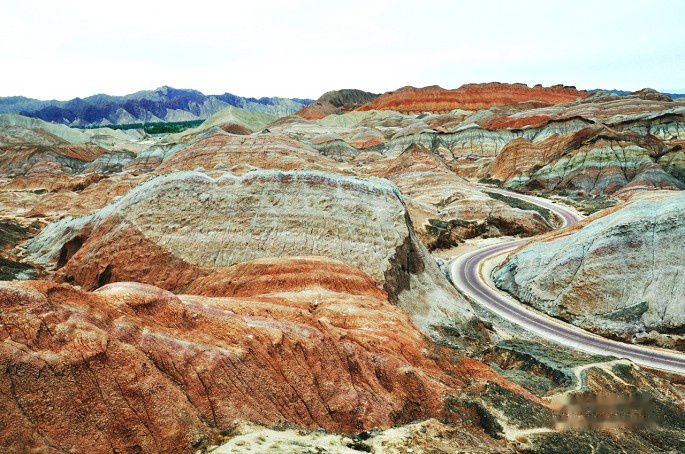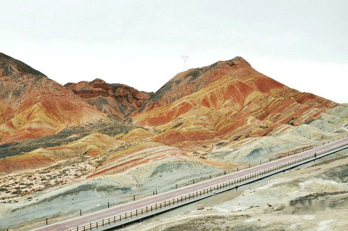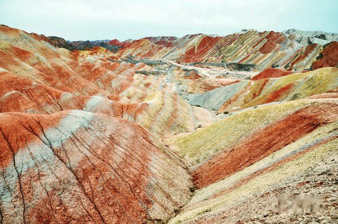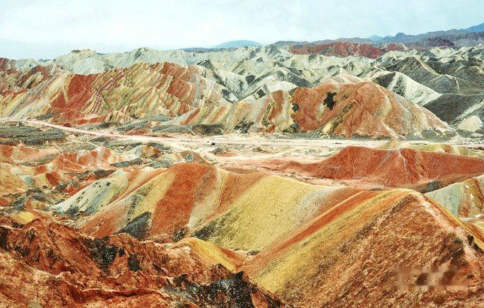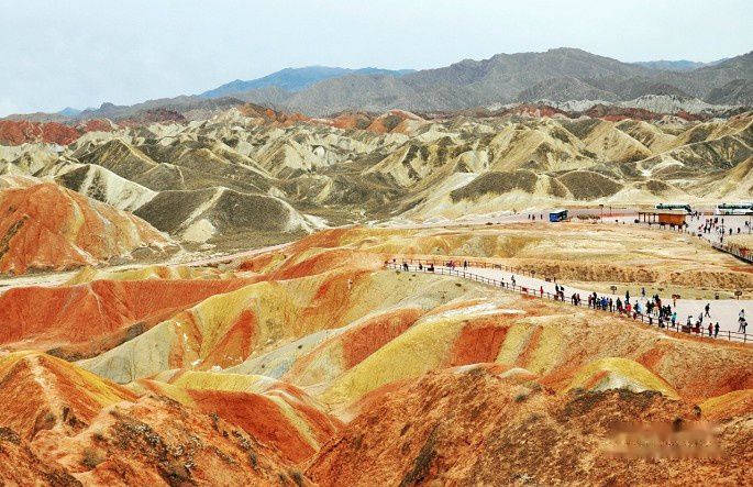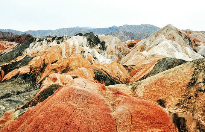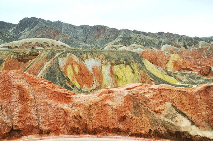 “色如渥丹,灿若明霞”,张掖丹霞主要由红色砾石、砂岩和泥岩组成,游客在这里能看到数以千计的悬崖、山峦呈现出鲜艳的丹红色和红褐色,特别是在阳光的照耀下山体呈现优美的纹理,各处造型奇特的山地丘陵色彩斑斓、气势磅礴。