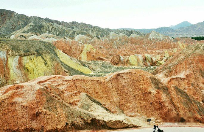 四号观景点是看日落的最佳之地,也是张掖丹霞最出彩处,赤,橙,黄,绿,青灰、灰黑、灰白的颜色,即使没有夕阳,色彩依然眩目。