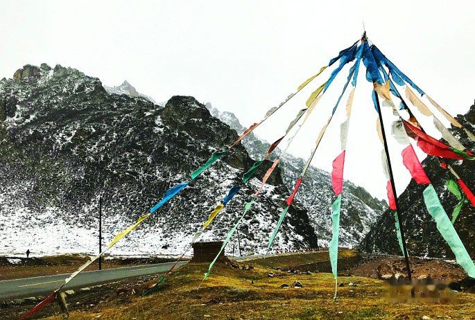 高山经幡随风呼呼飞舞,信仰的神圣不在富贵中,而是在苍茫恶劣的环境里,给予了信徒心灵的归属。