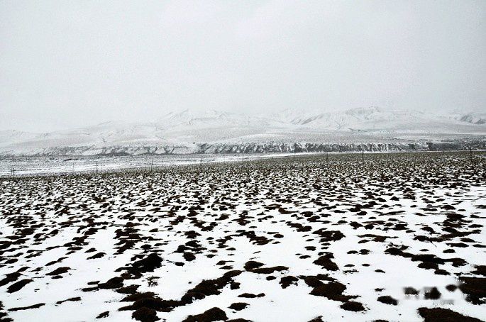 藏在大山大岭中的门源,以7月盛开的大面积油菜花而闻名,相比较婺源等地的江南油菜花,青海门源没有那么婀娜多姿,却有着西北的大气磅礴和铺天盖地的大色块。遗憾来得不是时候,风雪下没有油菜花的门源长这样子。