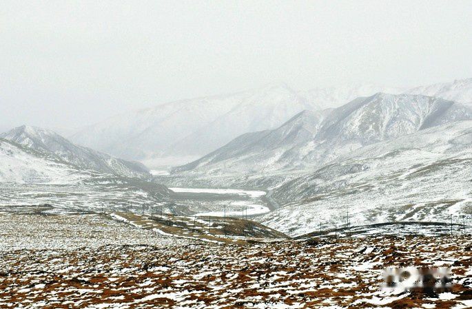 岗什卡雪峰海拔5254.5米,是祁连山脉东段的最高峰,也是门源境内群山之首。可惜雪下个不停,天色朦胧,沿着冰封的祁连山一路飞驰的我们,始终见不到主峰的真容!