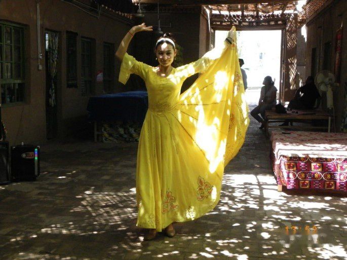 离开坎儿井。来到“维吾尔古村”,村子位于“交河故城”脚下现有古老维吾尔自然村落之一的,有数百年历史的吐鲁番市亚尔乡亚尔果勒村,毗邻交河故城,占地20000余平方米,是一个展示维吾尔原生态民俗风情和交河历史文化的旅游景区,是一座大型的博物院群。