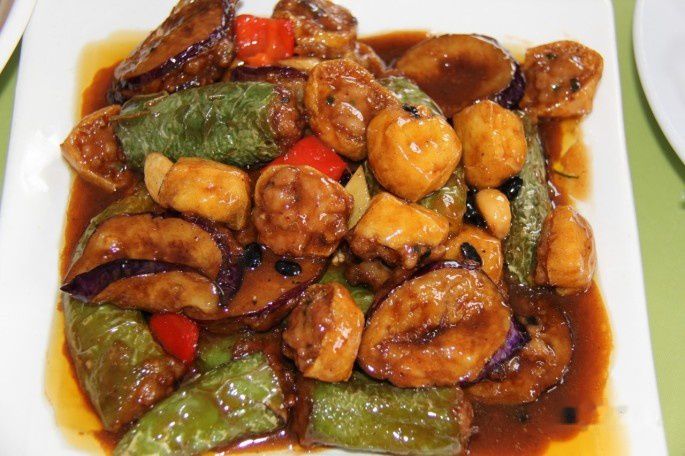 尖椒、豆泡和茄盒三种塞肉。