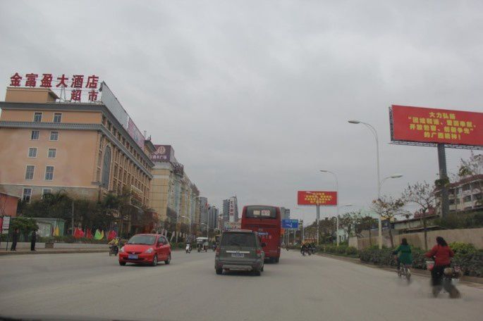 仙葫大道。沿途的高楼大厦不少。