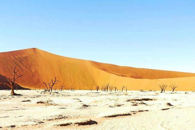 死亡谷,是位于纳米比亚苏索斯维利盐田里的一片令人惊叹的白色粘土洼地的名字。它被视为地球上最不适宜生存的地区之一,在近900年的时间里,这里寸草不生,没有任何生命迹象,也被传“离死亡最近的地方”。它被众多的沙丘环绕着,谷内寸草不生,只有枯树的遗骸。据说千年以前这里曾经是咸水湖,由于气候的变化,如今成了死寂的没有任何生命的地方。