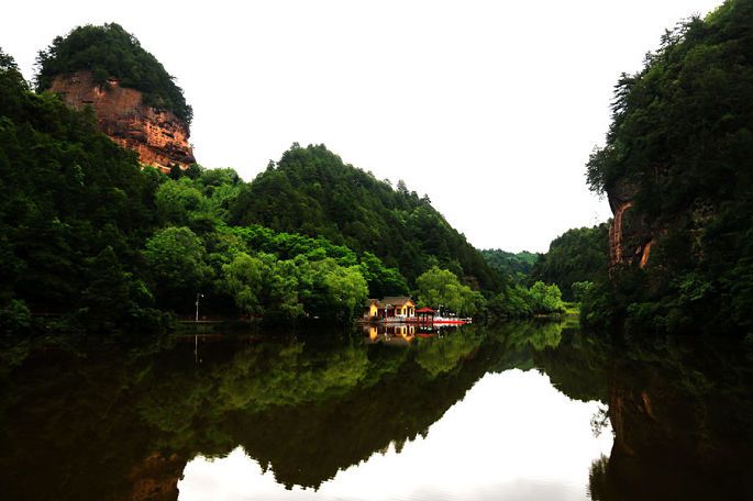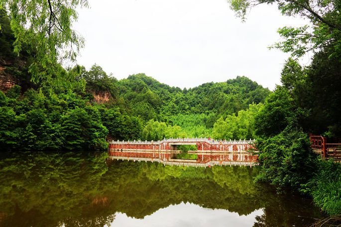 我们先到的是仙人湖,真没有想到,在这青山环抱之中还隐藏着这么一泓静静的湖水,水平如镜,山色倒映,景致非常优美。