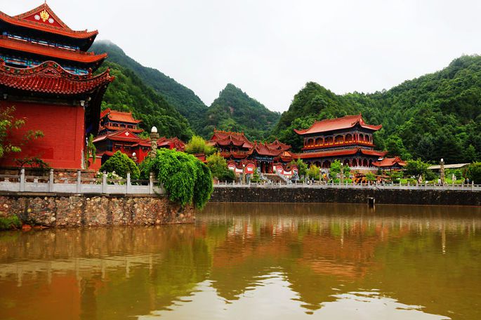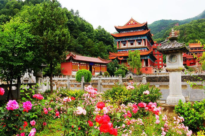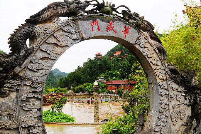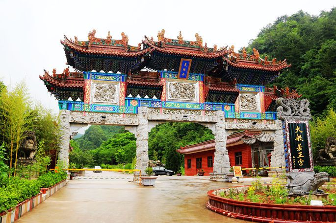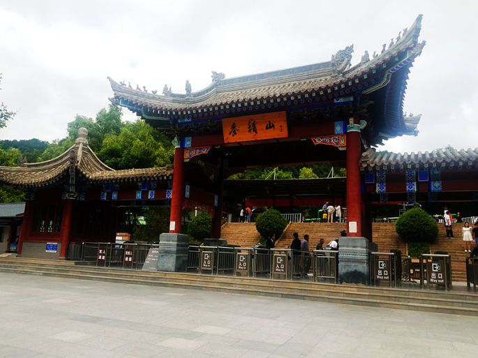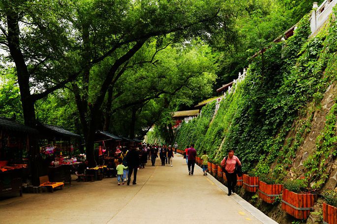 在路边小店吃过凉皮、砂锅,算是午餐,之后打算进入寺内,没想到穿过山门大牌坊后,完全看不到寺院的一点影子,原来还需要走上很长一段弯弯的大路,直到这段大路的尽头,才眼前一亮,豁然开朗,别有天地。