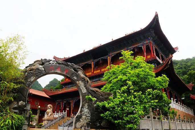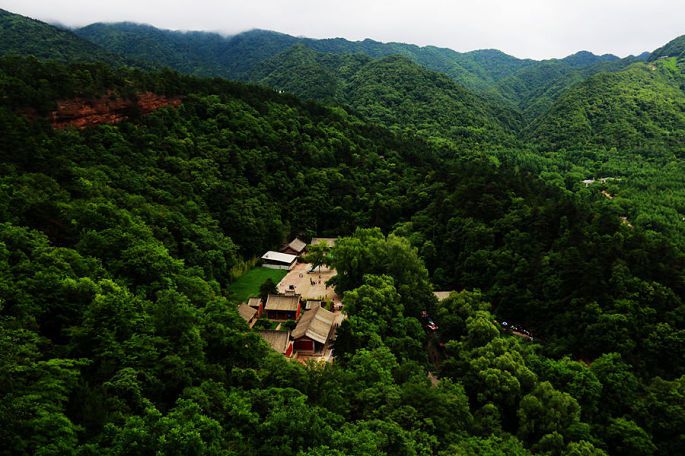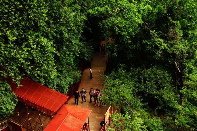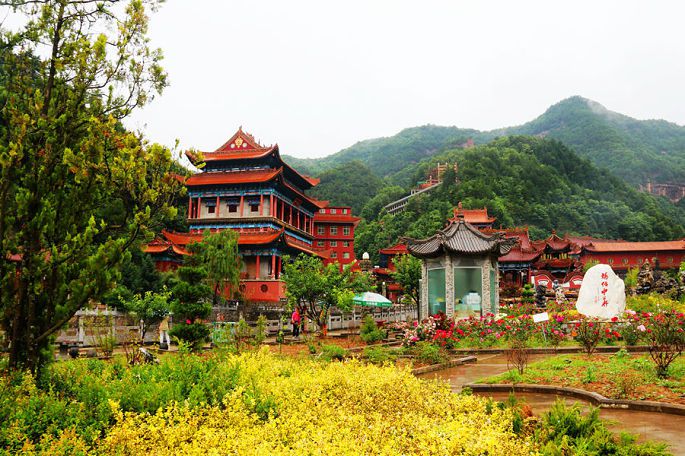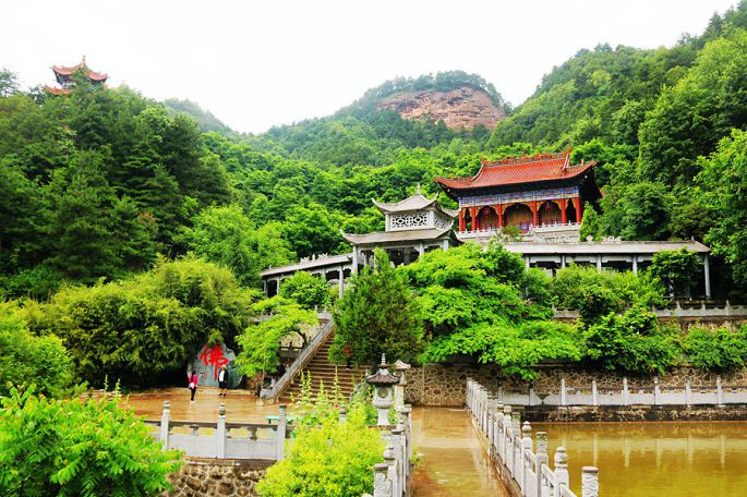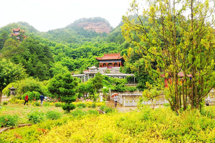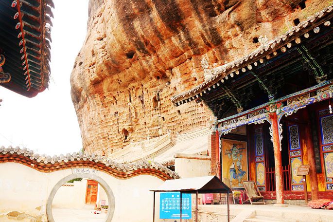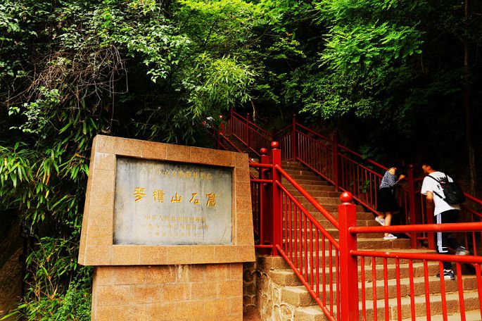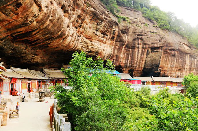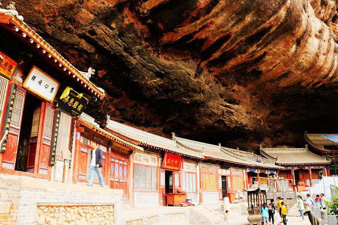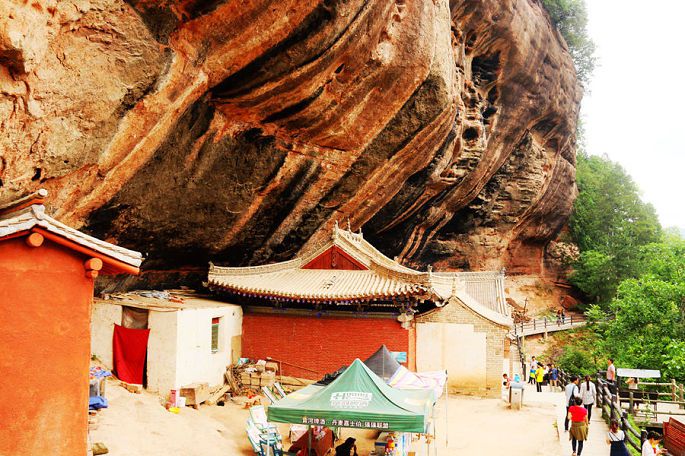 离开仙人湖,沿小路向上攀爬,很快就来到南崖,顺路经过几座佛塔,转弯再往前走,便有一个岔路口,往东是东崖、梯子洞,往西向上,经过磨针殿(玉皇峰、献珠峰)可到西崖的灵应寺。灵应寺原来叫华严寺,据说后来是明朝的永乐皇帝(成祖)朱棣为其赐名“灵应寺”的,寺院的选址很特别,巧妙利用这里的地形地势,大部分殿宇都建在一座天然巨大的岩石之下,可谓真的是石窟之寺。