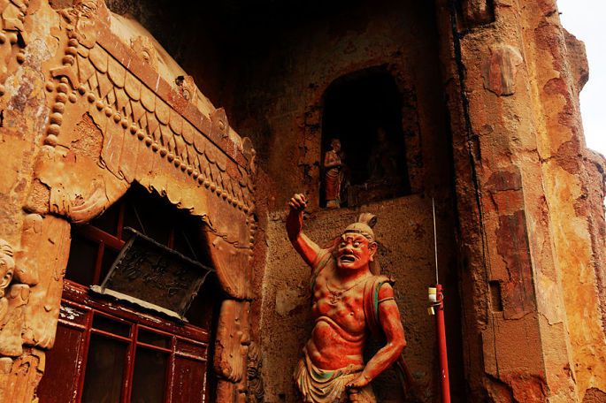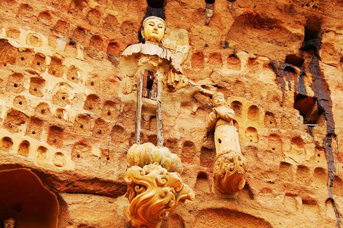 仙人崖景区也有石窟,保存有北魏、宋、明、清各代的塑像100多尊和一些壁画。不过这里的洞窟、造像似乎毁塌严重,很多壁龛里都已空无无物,而且从规模、数量、艺术性等方面来说,都不可与麦积山的石窟相比。