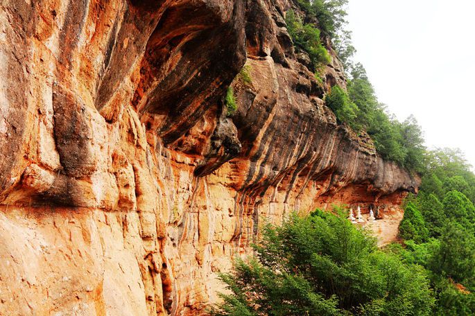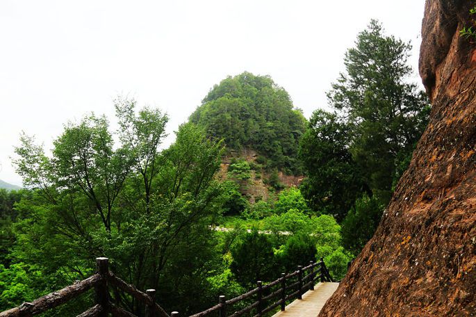 仙人崖景区距麦积山石窟约15公里,主要分布有东崖、南崖和西崖三座同昨天看过的石窟所在一样的麦秸垛形的山峰,此外还有玉皇峰、献珠峰、宝盖峰等,这些山峰相对高度都不算高,彼此之间距离也不远。