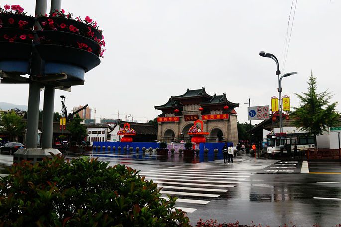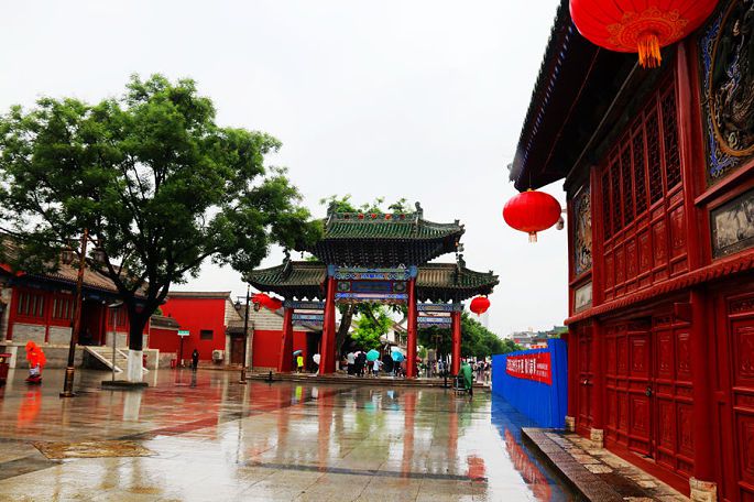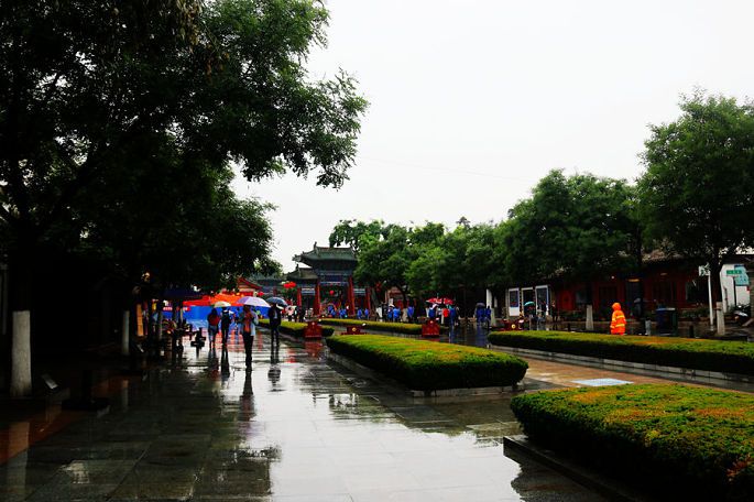 睡到自然醒,早餐后,因为下雨,虽然距离很近,老板还是主动提出开车将我们送到景区门口的公交站,我们坐34路公交车到团庄村,然后转17路,10:50到终点华天宾馆站下车,伏羲庙就在附近的伏羲城里。