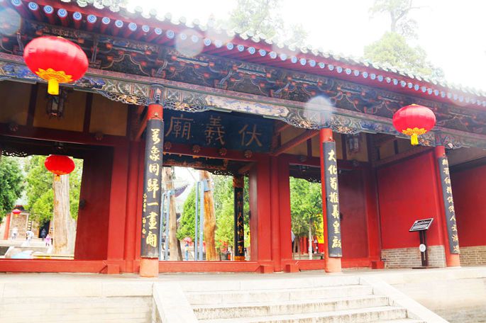 天水的伏羲庙是一座专门祭祀伏羲氏的宗庙建筑群,现存建筑建于明朝成化十九年(公园1483年),整体建筑坐北朝南,四进六院,具有典型的我国古代宫廷式建筑的格局,是目前我国保存最为完整、建筑年代最早的祭祀伏羲氏的庙宇。