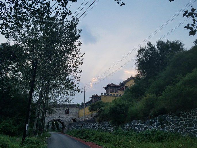 碧落寺正门前有路,接连两个顶桥。山间凉风阵阵,走没几分钟就到了大路口(南牛线)。班车已无,但很快等上拉人的小面包,满满一车。不足半个小时,大(dài)阳镇即在眼前,而天已近黑。