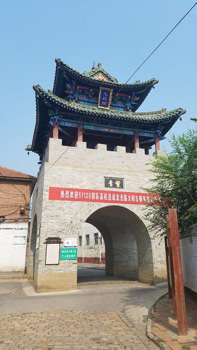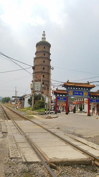 出东大作,过赵家车马店,到阳阿新街,铁道旁天柱塔高耸,还有三晋一镇牌坊。问人说是有班车经过大周村,但不知道时间。索性边走边拦车,不多久就一小伙儿摩托载上咱,他家在东周村。