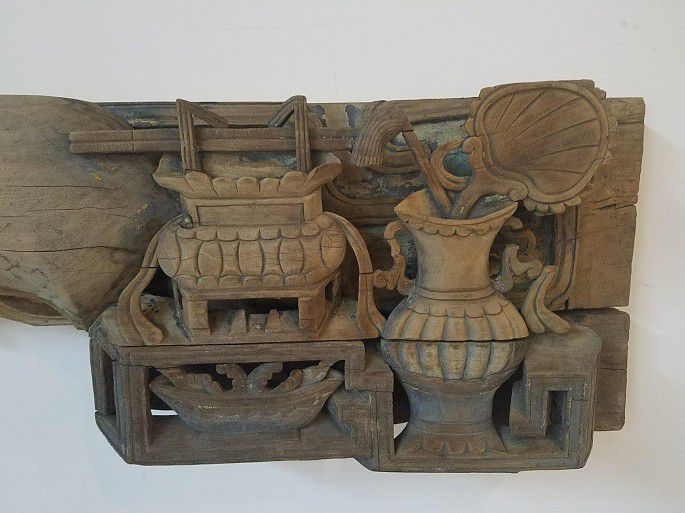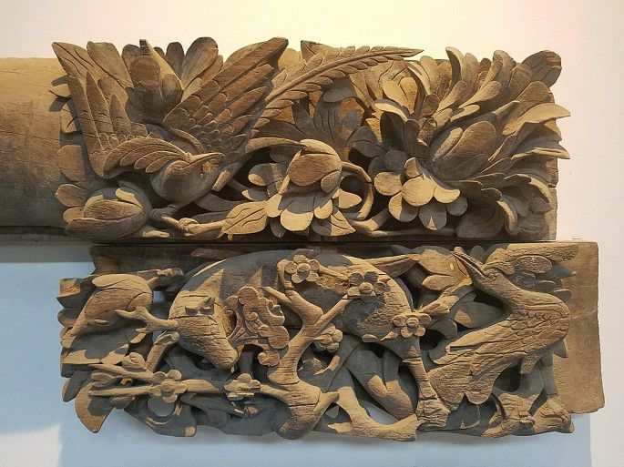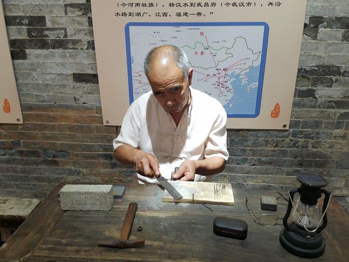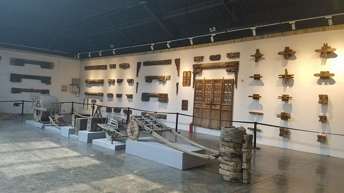 回到文昌阁,前行不远即是木作馆。里面除了木作图文介绍,还有不少实物,包括漂亮的木雕花饰文物和木作工具。两位60多岁张姓老匠人,精神矍铄,与之攀谈,蛮有意思。