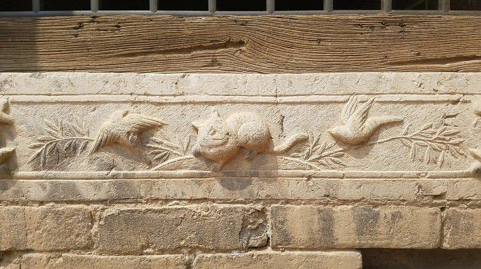 出村到大路,等拦车,很快有兄弟车停,他在长子县那边矿上工作,10元捎上,去慈林镇崔庄村法兴寺。村子紧邻铁路,村头一条小河,还有一古老的“学吃亏”壁坊。旁边一片老宅,一家大院内正房尚存木雕和石雕。