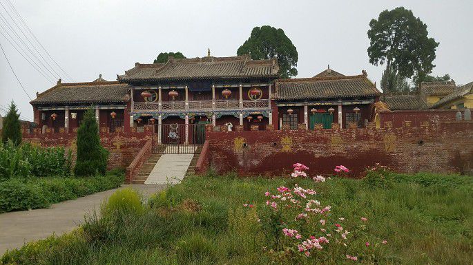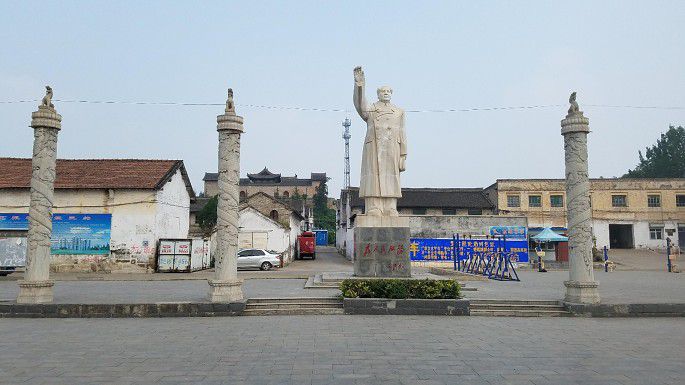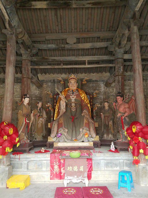 回到大路,很快坐上车,寺庄镇王报村头下。步行入村,见一片老房子围着座关帝庙,宽敞的广场上立毛ze东像,背对山坡上的二郎神庙。侧旁有路上去,门闭。正门沿阶下去,几间鸡舍挨着民栅,一屋内俩老汉老婆睡得酣,电视机声音挺大,喊了好一阵子老汉才醒,说是要找大队干部要钥匙开庙。