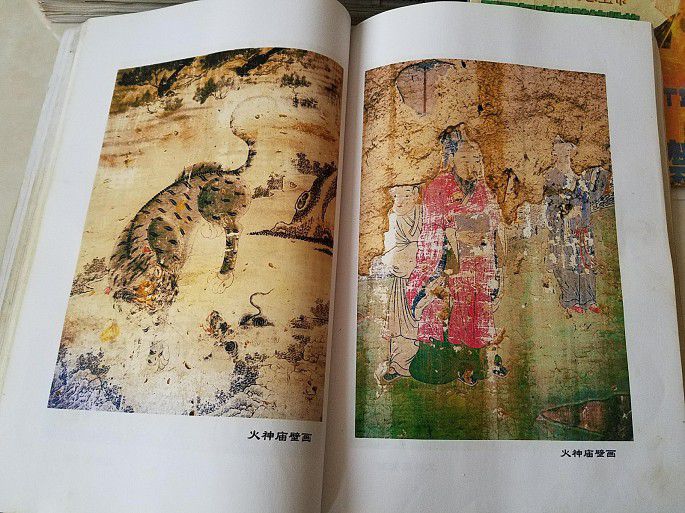 最受瞩目的还是那几个大寺庙:汤王庙、资圣寺和观音阁,集中在村中央,古色古香。汤王庙大殿元代遗存,檐额、内额用材硕大,特别是梁上一根水晶木,绝世之物。此外,山墙上也架有梁,又是奇特。庙内老者拿出相关书册,他是副主编,自豪言表。内附一些图片如火神庙壁画,二十多年前拍的,珍贵异常。