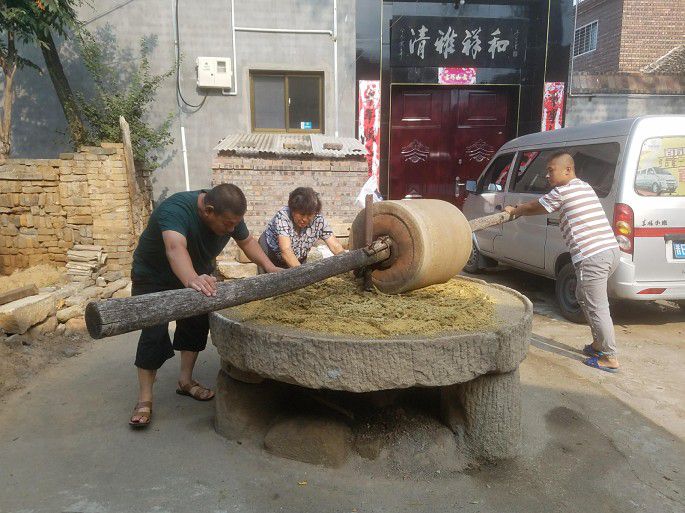 大周村老房子也不少,但比起曾为县治的大阳,就少多了。几个民家大院、几条巷子、几座小庙,散落村中,雕饰所留已不多。一家三口在推碾子弄小米,已是多少年不见了。