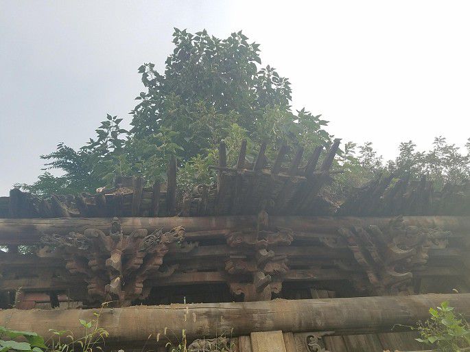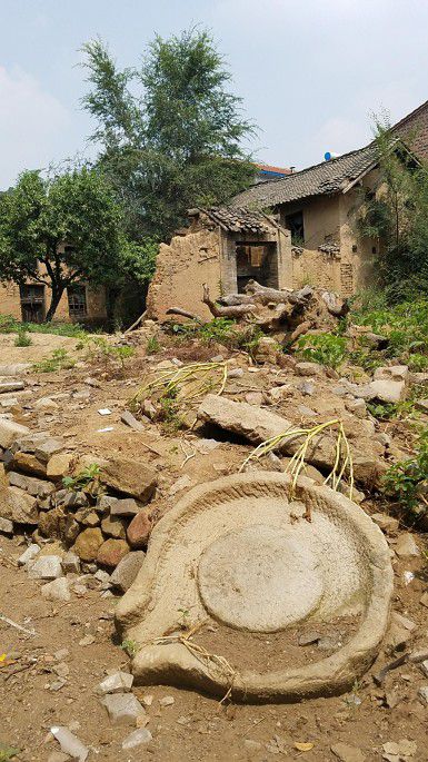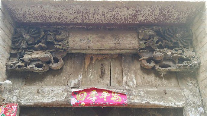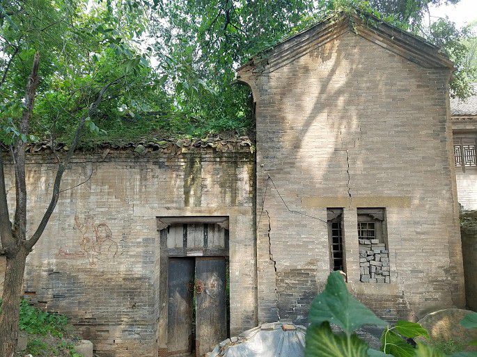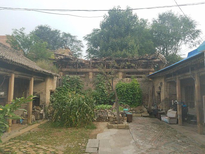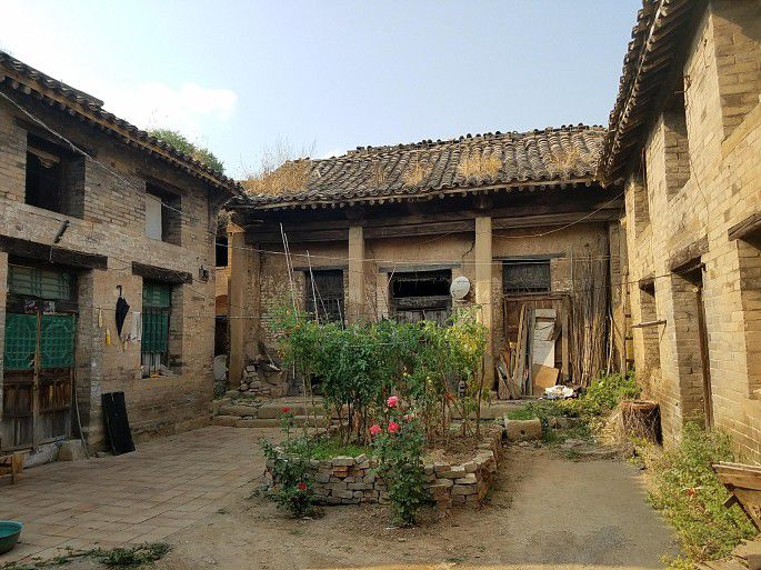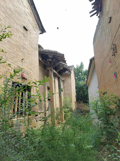 庙一侧一片老房子,一户人家正搬家。问知道在村头盖了新房子,这里太旧了。四合院挺别致,石柱还在,木雕已无,可想曾经的富庶。这户隔壁也是一老院,门锁着,门前杂草丛生,说是两三年没人住了。