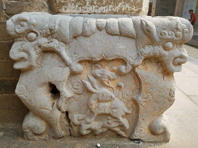 庙内戏台为金代遗构,说是最古老的戏台,比临汾牛王庙戏台还早,形制相仿,飞檐翘角粗木柱。正殿、献殿为明代遗构,献殿中放有明万历年间石雕供桌。正殿前檐下木雕花鸟虫兽,异常漂亮,文管员说一些还被偷了。石柱础雕饰也是形动,高超之作。