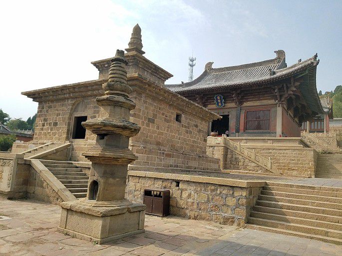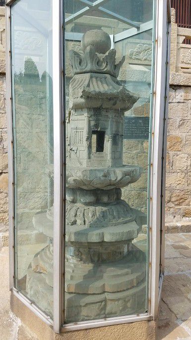 寺内其他建筑无奇,倒是后殿东观音阁檐下黑色大石柱上有题刻,文笔遒劲,时间为金卫绍王崇庆改元三月。开化寺南山坡上有塔园,三座古塔,包括唐代大愚禅师塔,却忘看了。