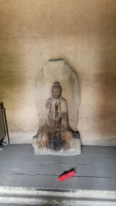 上清化寺在山腰,唐代寺基址,正重建,内有几尊古佛像散落。中清化寺又名六名寺,下清化寺是现神农镇政府院内,都没有去看。上、中、下清化寺皆为佛寺,都与炎帝神农的传说有关。炎帝中庙即头天去的下台村古中庙,羊头山东麓还有炎帝陵。