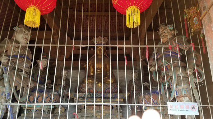 千佛殿是寺内主殿,宋构依旧,殿顶琉璃也为宋人旧作,殿殿内佛坛上一佛二菩萨及背面侧座观音像虽经后世重装,但仍保留了宋代风格,流光溢彩。三大士殿也叫罗汉殿,清代后修风格,但殿内几乎全是宋代原物,佛台上塑观音、文殊、普贤三尊菩萨,两侧为十八罗汉,大小与真人相似,神态生动自然,保存完好。地藏殿较小,明代遗物,但殿内塑地藏菩萨及侍者、十殿阎王、六曹判官等明代彩塑,塑工高超,保存完好,也不一般。