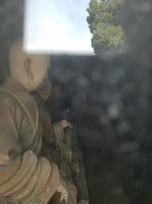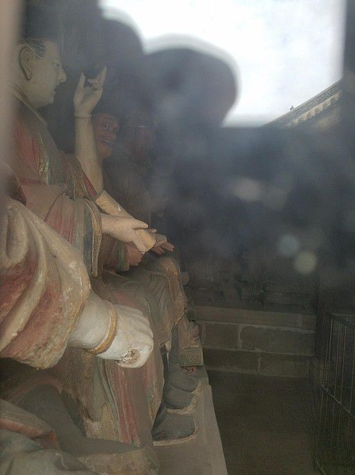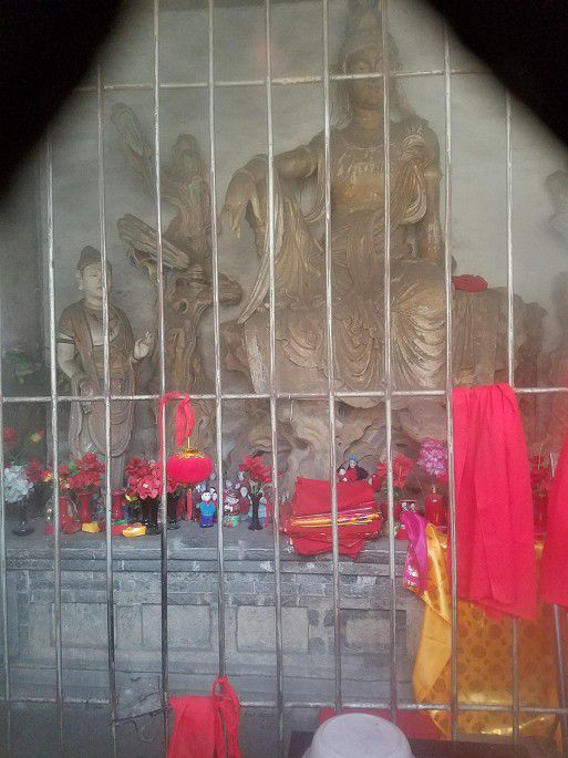 到后边小门继续敲,一老哥终于开门,说是文管所长家办喜事(?),上午早走了,他这儿与庙里不通(?)。疑惑,还有点恼火!过两点半,还没开门。大家伙轮番敲喊,近三点终于叫开,一小姑娘卖票,只是说七月十五情况特殊。哎.......还好,能看。