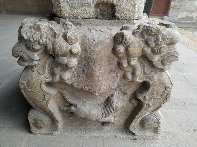 清晨的阳光刺眼,身体有些不适,没吃东西,径直去汤帝庙。由文昌阁入古街,在西大阳流连,旧宅老巷中穿梭。这边人少,村民闲散。汤帝庙门前几个老人,庙内汤帝殿出彩,前檐下硕大“粗犷”阑额凸显元代风范。多见石柱,柱础雕工精美。其它还有佛祖殿、老君殿、三宗殿、虫王殿等,以及几通古碑。