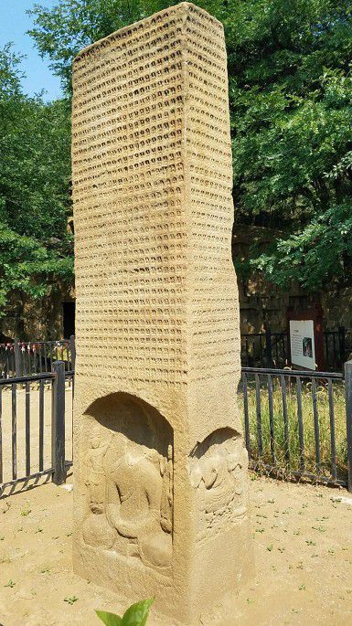 早起坐三轮去羊头山,15大元,五公里多些。天有些热,顶日入景区参览。广场上有炎帝神农氏雕像,在上即到神农庙,除了一通古碑和檐下柱础,其余都是后建。神农寺旁小道上山,开启重头戏——羊头山石窟造像。