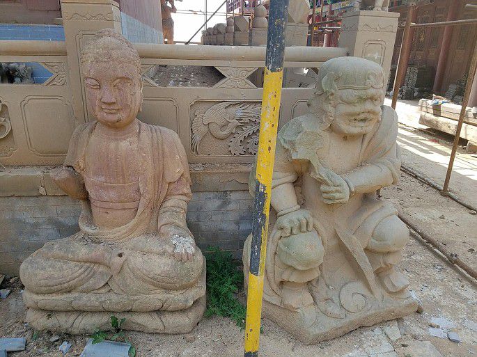 寺内各处正在雕塑佛像,草胎而没有施彩,看着也蛮有味儿的。