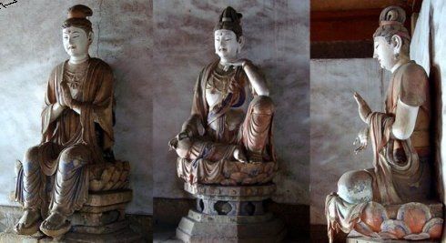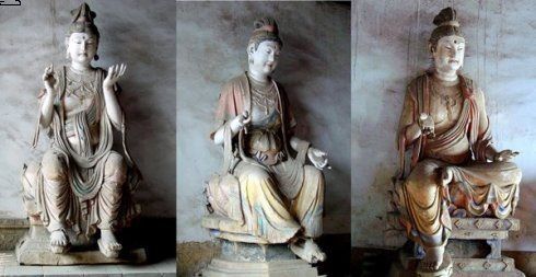 圆觉殿就更亮彩了,殿宇轩昂,殿内宽大佛坛立佛、菩萨、弟子、金刚等,两次间各塑圆觉像六尊,庄重隽美,神态俊逸。宋代彩塑尤其是十二圆觉像造型俊美,工艺极精,与大同华严寺辽代塑像、太原晋祠宋代塑像相比有过之,让人痴醉其中。此外,塑像较为丰满,可谓宋塑唐韵。