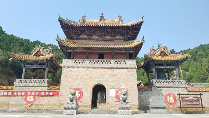 出景区,回到大路,没有车,走了好一阵子才有着装时髦年轻人捎咱到镇上。这里离陈区镇10余公里,没有直达班车,三轮不去,出租贵了些。决定先走一段再说,便上锡海线向北,很快在口泽村下到浩王线,继续向东。随后先搭了一段小面包,再搭摩托,不到半个小时往开化寺拐的路口下车,挺顺。