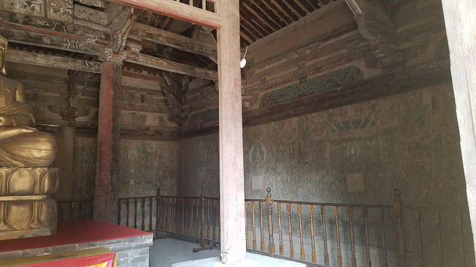 开化寺一进二院,大雄殿为宋代遗构,殿宇浑厚壮观。殿内梁架上有宋代彩绘图案,四壁满绘壁画,为现存宋代壁画中面积最大保存最完好,内容为佛传故事,形象逼真,富有艺术美感,价值极高。只是大殿双锁把门,只能隔着栅栏看个粗略。