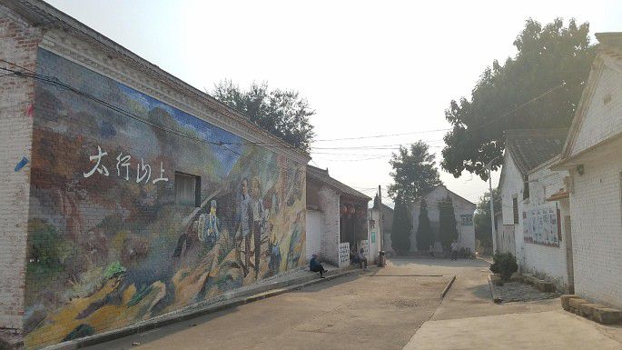 出村,在向铁炉村拐的路口告拜老汉,步行去清梦观。路正在修,玉米发黄已熟,迎风哗啦,秋意入心。翻过一个山头,过一村,村里也有些老屋子,看了几眼。到铁炉村,见墙壁上有“太行山上”大幅彩画,还有彭德怀旧居的小院子,当年八路军战斗生活的地方。这里是贡梨的故乡,随处可见。