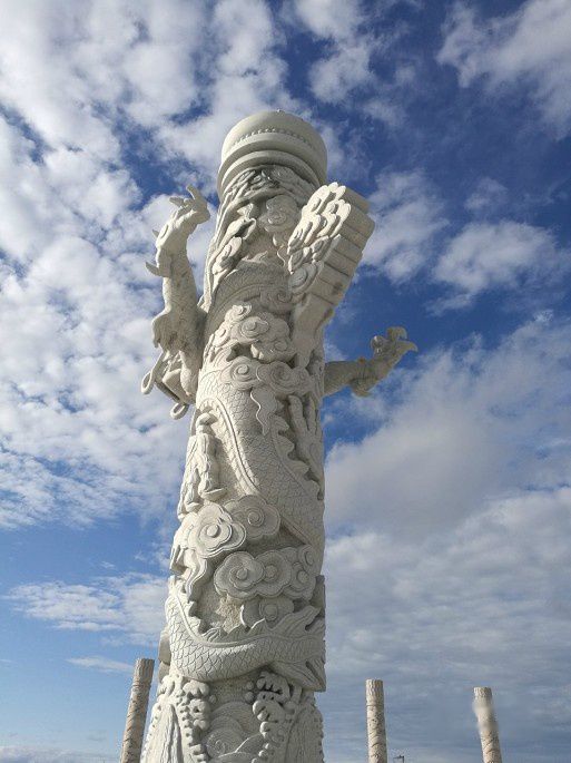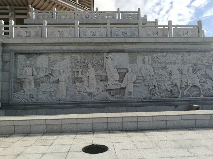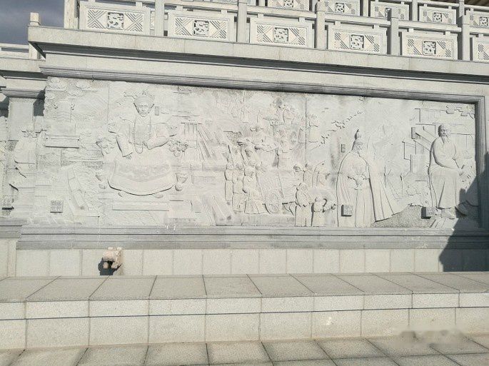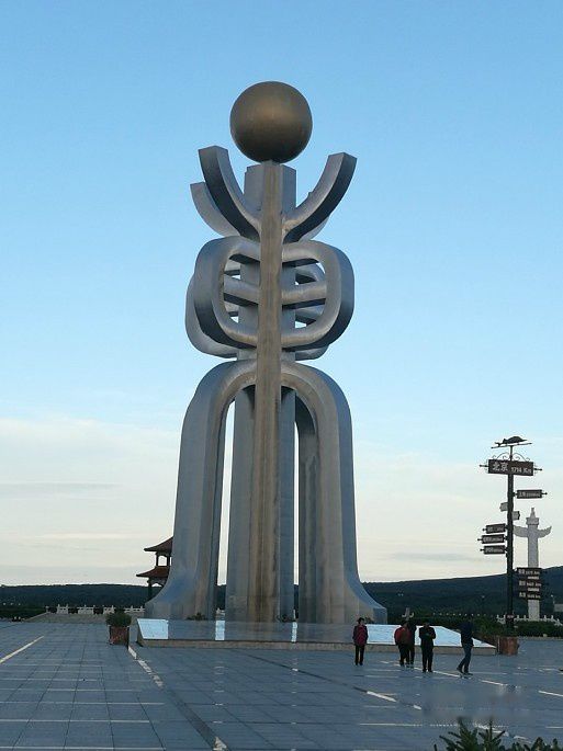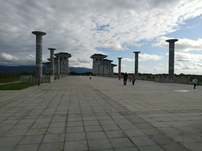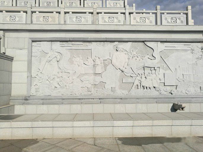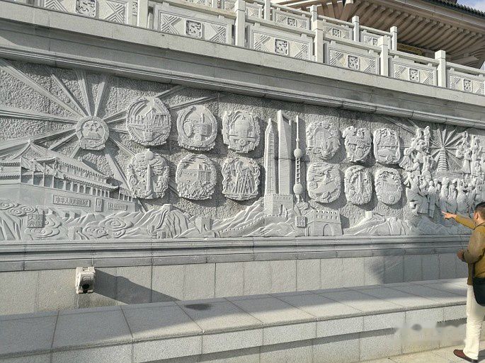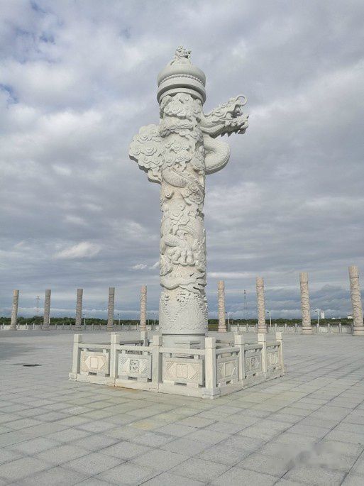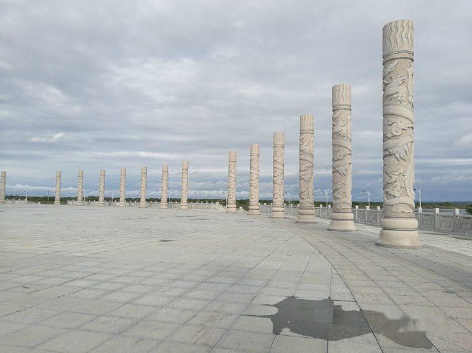 广场布设60根青石盘龙浮雕柱,周边的56根代表中华56个民族,