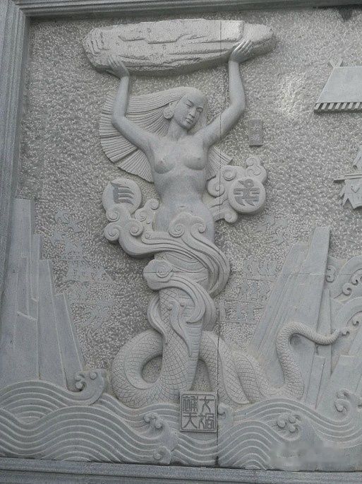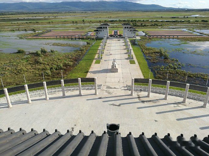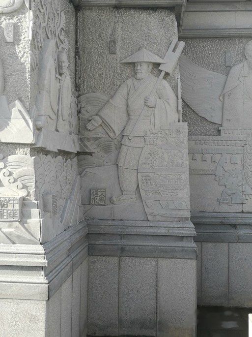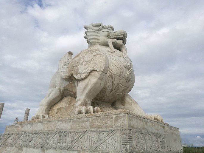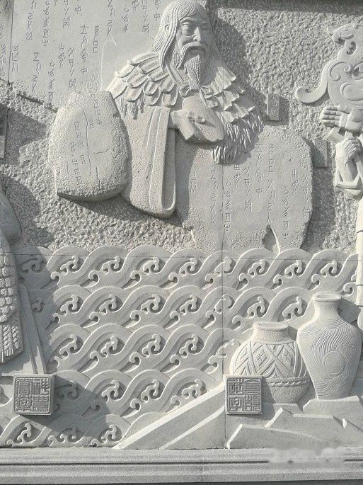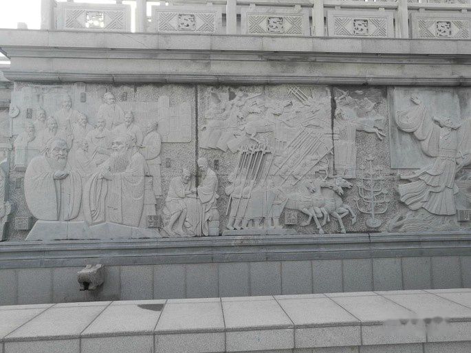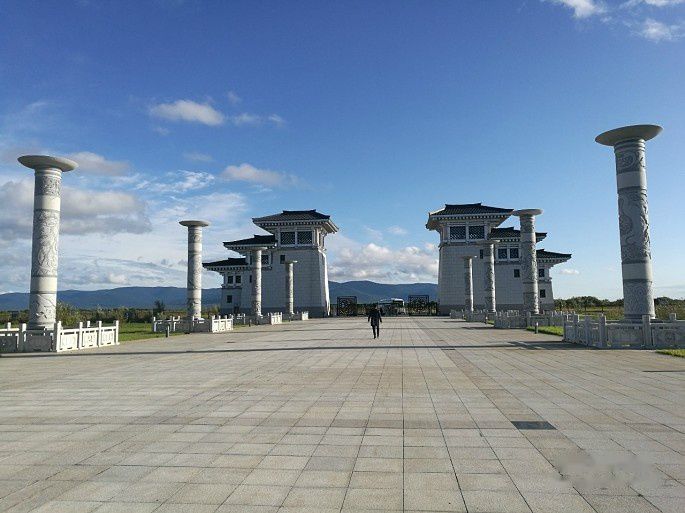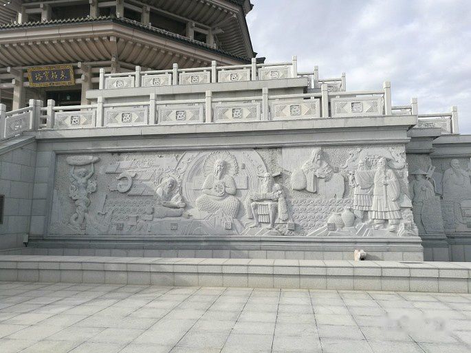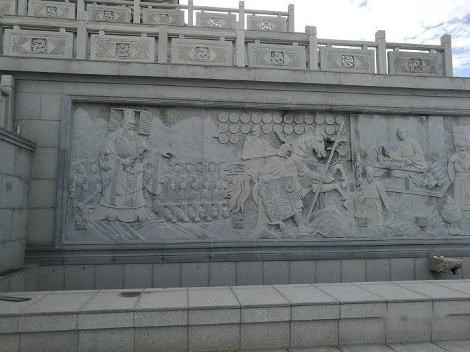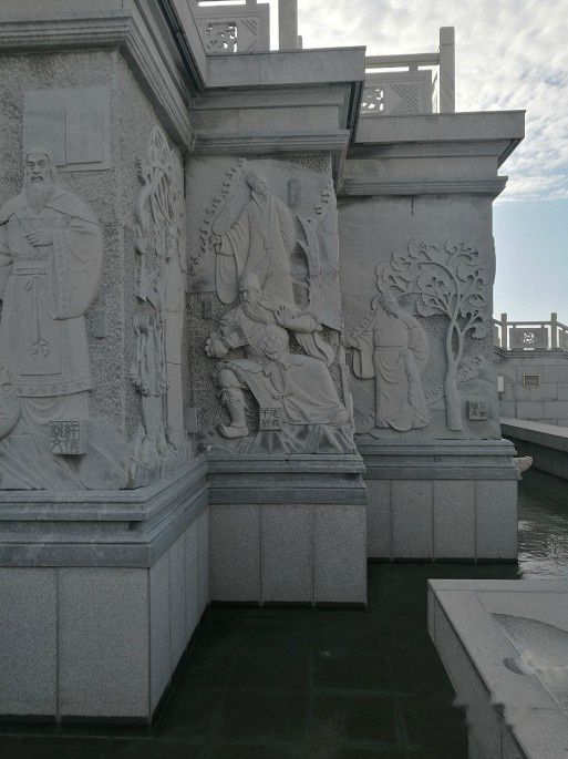 广场布设60根青石盘龙浮雕柱,周边的56根代表中华56个民族,