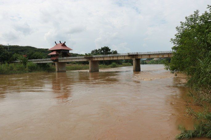 园子的尽头是南汀河,界河南帕河(清水河)在这里与南汀河汇合。我隔河观望,看到南汀河下游的缅甸建了座桥,桥上有个堡,我用相机拉近一看,原来是缅甸掸邦第二特区(佤邦)南邓的检查站。过了河,就出国。