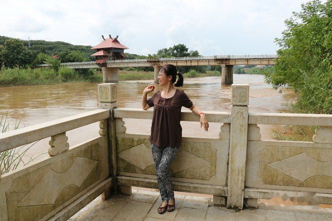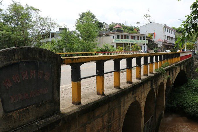 我沿着南帕河(清水河)逆行而上,界河桥静静地立于南帕河上,这是座石拱桥,桥的中界就是中缅两国的国界,以桥栏上的颜色区分,中国为黄黑色,缅甸为红白色。我走近界河桥,倚靠着界河桥拍照留影。