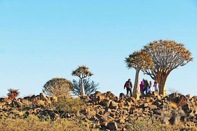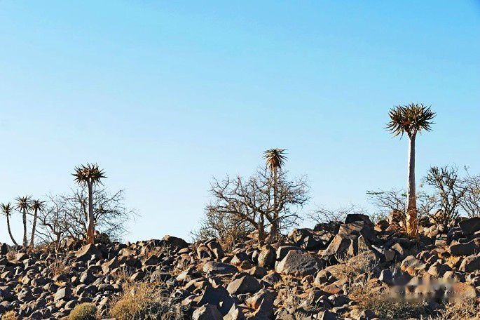 基特曼斯胡普(Keetmanshoop)是纳米比亚南部卡拉斯区的首府,箭袋树森林就位于基特曼斯胡普。自然总是为我们展现奇迹,面对绝境,生命总是会寻找出路,在这干旱之地也不例外。在这里生长着一种高大挺拔,长得很“外星球”的植物—箭袋树(Quiver Tree),它以违反自然的姿态傲然挺立。