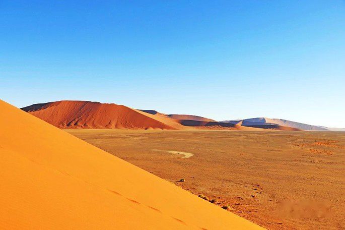 第二天早餐后乘车重走去苏丝斯黎公园的路,天气晴朗,红色的沙丘在阳光的照射下的光影煞是诱人。