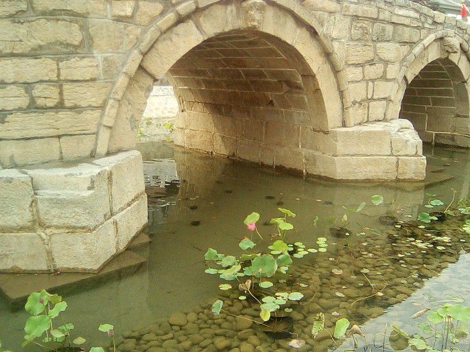 游人如织,朗朗笑声。城头红旗,猎猎迎风。古桥荷花,清冽水中。秋意渐兴,游乐融融。