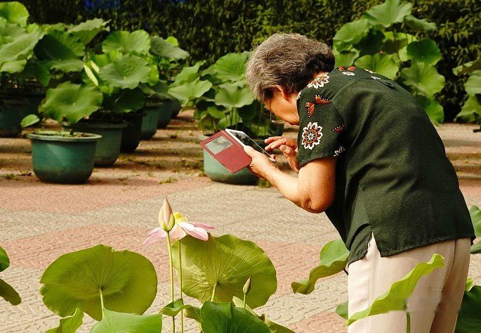 因为尚未到荷花盛开的季节,因此只有盆荷,大伙儿围着盆荷拍了一阵子。